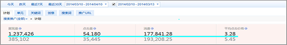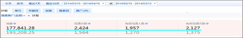 二、该企业的百度推广点击量从35445提升到54180,但是消费却从193208.25降低到177841.28;平均点击价格从5.45降低到3.28,当月实现消费下降15366.97元的情况下,点击量还增加了18735次。